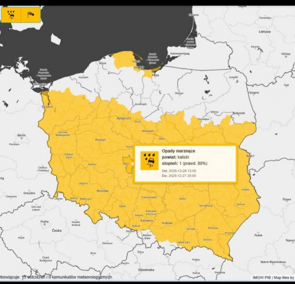 Marznące opady deszczu i mżawki sprawiły, że od piątkowego wieczoru (26.12) warunki na drogach gwałtownie się pogorszyły. Jezdnie i chodniki w wielu miejscach zamieniły się w lodowisko, co było przyczyną kolizji drogowych. Choć sytuacja na głównych trasach stopniowo się stabilizuje, kierowcy i piesi nadal powinni zachować szczególną ostrożność.