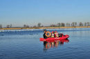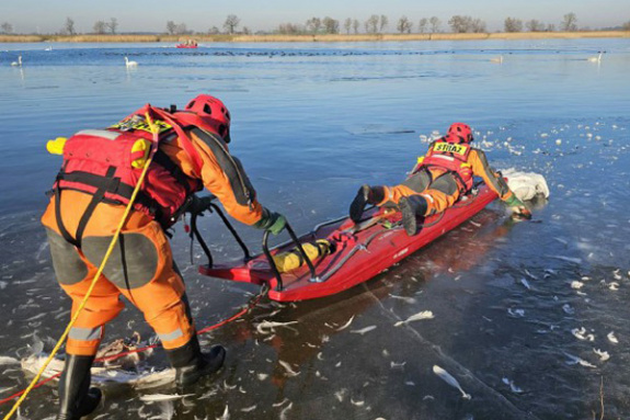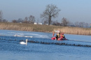 nich działał na nieoblodzonej części akwenu, zbierając ptaki pływające na powierzchni wody. Drugi zastęp, przy użyciu sań lodowych, usuwał łabędzie znajdujące się na lodzie. Zebrane ptaki były przekazywane na brzeg przedstawicielom weterynarii, którzy przejęli dalsze czynności. Łącznie zebrano 50 martwych łabędzi. Część z nich była przymarznięta do lodu, pozostałe unosiły się na wodzie. Zdarzenie zostało zgłoszone przez społeczną straż rybacką. Po zakończeniu akcji przez strażaków sprawę przejął Powiatowy Inspektorat Weterynarii, który będzie ustalał przyczynę padnięcia ptaków