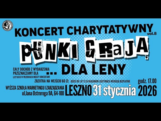 To punkowy zlot serduch i wzmacniaczy – tak o dzisiejszej imprezie w Wyższej Szkole Marketingu i Zarządzania piszą organizatorzy. W budynku po dawnej uczelni odbędzie się koncert charytatywny „Punki grają dla Leny”, który połączy ostre brzmienia z pomocą dla potrzebującej dziewczynki. Dochód z wydarzenia wesprze młodą mieszkankę Leszna, chorującą na młodzieńcze idiopatyczne zapalenie stawów.