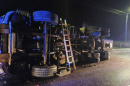 Przez blisko cztery godziny całkowicie zablokowana była w nocy droga powiatowa w Krzycku Małym po groźnym zdarzeniu z udziałem piaskarki. Kierowca ciężarówki, podczas prac drogowych, uderzył w ogrodzenie posesji, a pojazd przewrócił się na bok.