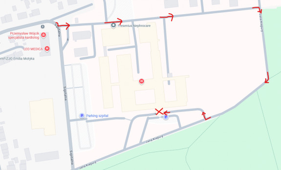 30. Dodane przez do kom. 29, w dniu - 16-02-2026 11:49 75 Karetki będą jeździły drogą wewnętrzną pokazaną w komemtarzu nr 28. Już są wzdłuż niej oznaczenia.