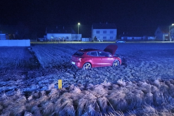 Nocne zdarzenie na krajowej "Dwunastce"Zając wbiegł na jezdnię. 20-latek zakończył jazdę w polu |