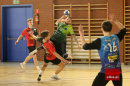 Wysokiej porażki doznała MKS Folplast Tęcza Kościan, której lekcji udzielił lider rozgrywek - SP Purina Kąty Wrocławskie. Gospodarze byli bezradni w starciu z faworytem i już do 13. minuty przegrywali 1:12. Do przerwy udało się nieco poprawić dorobek bramkowy, jednak wynik nadal był bardzo wysoki (7:24). Po zmianie stron drużyna lidera nie zwalniała tempa i pewnie zmierzała po zwycięstwo, trafiając seriami i kontrolując przebieg meczu. Ostatecznie spotkanie zakończyło się wynikiem 47:20 dla ekipy z Kątów Wrocławskich. Najwięcej bramek (4) dla Tęczy zdobył Kacper Janczyk.