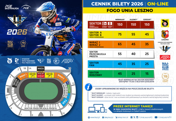 kibiców równie ważna informacja pojawiła się dzień później. Klub rozpoczął sprzedaż biletów na pierwszy mecz ligowy sezonu 2026. Leszczyńskie „Byki” rozpoczną tegoroczną walkę o Drużynowe Mistrzostwo Polski spotkaniem z Włókniarzem Częstochowa. Inauguracyjny pojedynek odbędzie się w piątek, 10 kwietnia o godzinie 18:00 na stadionie Smoczyka. Będzie to jednocześnie pierwszy mecz nowego sezonu żużlowej ekstraligi.
