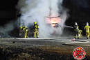 dotarli na miejsce, ogień był już bardzo rozwinięty. Pojazdy znajdowały się na środku placu, dzięki czemu nie było zagrożenia rozprzestrzenienia się pożaru na inne obiekty.