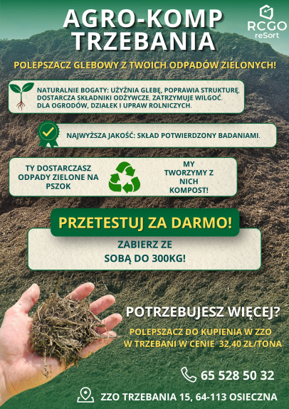 Propozycja Regionalnego Centrum Gospodarki Odpadami reSort to przykład zamknięcia obiegu - dzięki odpowiedniemu procesowi przetwarzania trawa, liście i gałęzie oddawane przez mieszkańców zamieniają się w pełnowartościowy kompost, który wraca do użytkowników jako polepszacz gleby. Pierwsze testy produktu już trwają - kompost trafił m.in. do Rodzinnych Ogrodów Działkowych w Rawiczu. Teraz mogą go sprawdzić także indywidualni mieszkańcy. Model działania jest prosty: najpierw można bezpłatnie przetestować produkt, a jeśli kompost spełni oczekiwania, kupić większe ilości w Zakładzie Zagospodarowania Odpadów w Trzebani - w cenie 32,40 zł za tonę. Obecnie Agro-Komp Trzebania dostępny jest w PSZOK Koszanowo w gminie Śmigiel, ale w planach jest rozszerzenie dostępności kompostu na kolejne punkty PSZOK, co ułatwi korzystanie z oferty większej liczbie mieszkańców. Kompost oferowany w ramach programu to naturalny sposób na poprawę jakości gleby bez sięgania po chemiczne środki. Jego zastosowanie użyźnia glebę i poprawia strukturę podłoża, co pomaga w zatrzymywaniu wilgoci. Kompost dostarcza roślinom niezbędnych składników odżywczych. Dzięki temu sprawdza się zarówno w ogrodach przydomowych, jak i na działkach. Nowa inicjatywa RCGO reSort pokazuje, że gospodarka odpadami może mieć bardzo praktyczny wymiar - zamiast traktować odpady zielone jako problem, można je wykorzystać jako zasób. Dla mieszkańców to nie tylko wygoda, ale też realna oszczędność i korzyść dla ogrodów. | ||