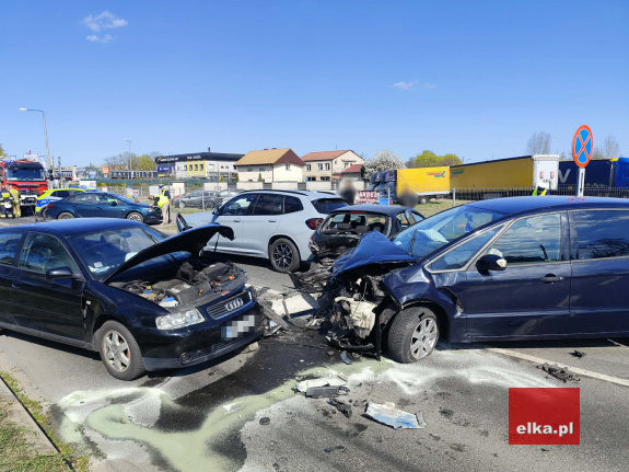 nie zachował odpowiedniej odległości i na ul. Fabrycznej uderzył w tył Peugeota, a ten w kolejny poprzedzający go samochód. Na tym się nie skończyło - Ford przemieścił się później na przeciwny pas ruchu i zderzył z jadącym z przeciwka Audi.