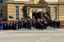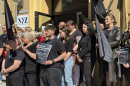 StartRawicz Wyszli przed budynek szpitala ubrani na czarno