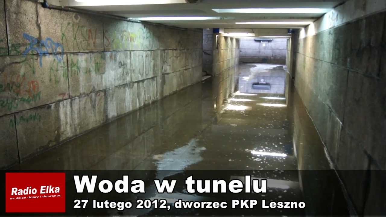Podróżni, którzy wchodzili w dziś (27.02) na leszczyński dworzec, usłyszeli z megafonów taki komunikat: Z powodu nagromadzenia się wody w tunelu, uprasza się podróżnych o przechodzenie na peron drugi, i do miasta kładkami na końcu peronu. Prosimy