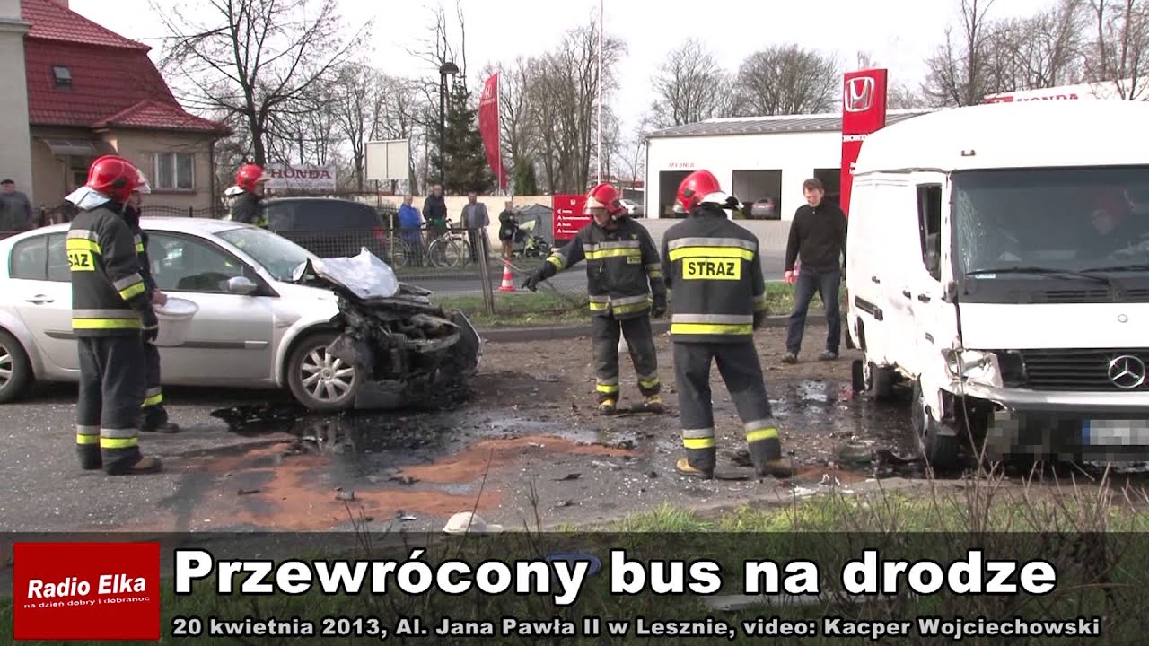 ustąpił pierwszeństwa kierującemu oplem, czym doprowadził do bocznego zderzenia, a następnie stracił panowanie nad busem, zjechał na pas rozdziału jezdni, uszkodził płot, po czym doprowadził do zderzenia z jadącym z przeciwka renault i przewrócił się na jezdnię - opisuje Wojciech Szyguła z Komendy Miejskiej Policji w Lesznie. Poszkodowany został kierowca renault. Mieszkaniec Wrocławia trafił do szpitala, ale badania nie wykazały poważniejszych obrażeń. Policja wyjaśnia wszystkie okoliczności kolizji. Kierowcy trzech uczestniczących w niej samochodów byli trzeźwi. Przez blisko dwie godziny północna nitka Alei była zamknięta, kierowcy musieli korzystać z objazdów. (han)