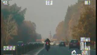 Funkcjonariusze leszczyńskiej policji ukarali mandatem 27-letniego mieszkańca powiatu rawickiego, który na trasie Rydzyna-Leszno poruszał się motocyklem z zawrotną prędkością. Jego wyczyn zarejestrowała kamera z videorejestratora