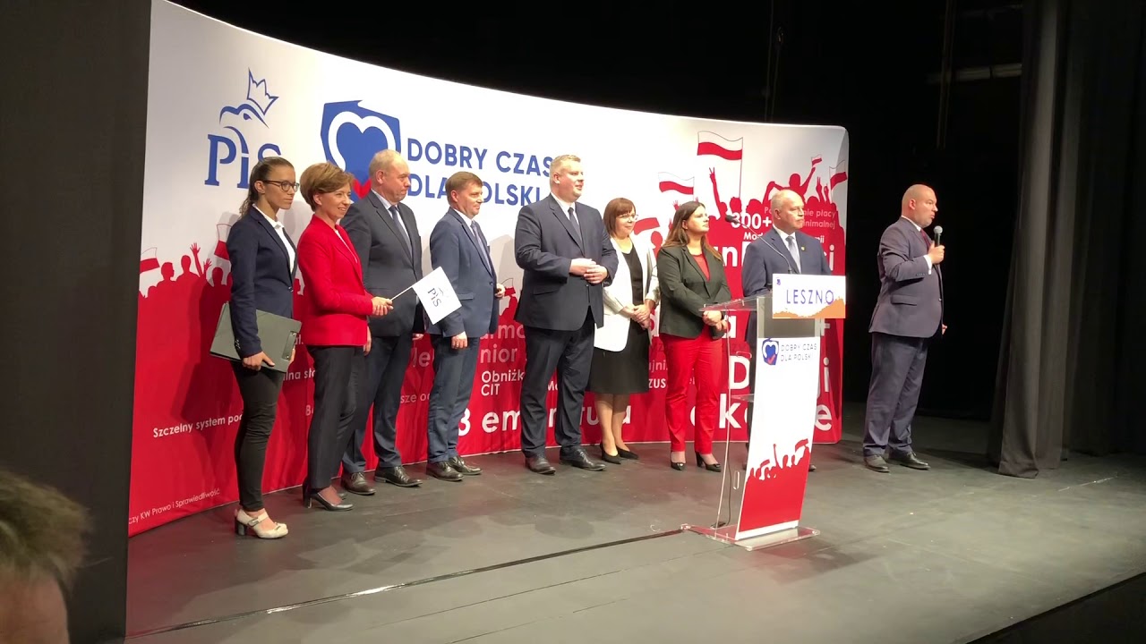 Następnie na scenie zaprezentowali się kandydaci na posłów z okręgu nr 36, a także kandydat na senatora Adam Kośmider, który zapewnił, że będzie aktywnie działał na rzecz mieszkańców. Po tym wystąpieniu gorąco przywitano premiera RP Mateusza Morawieckiego, który przyjechał do Leszna wprost z Opola. Na początku przyznał, że z Lesznem ma bardzo wiele ciepłych wspomnień. Pogratulował także Fogo Unii Leszno zdobycia trzeciego z rzędu Drużynowego Mistrzostwa Polski.