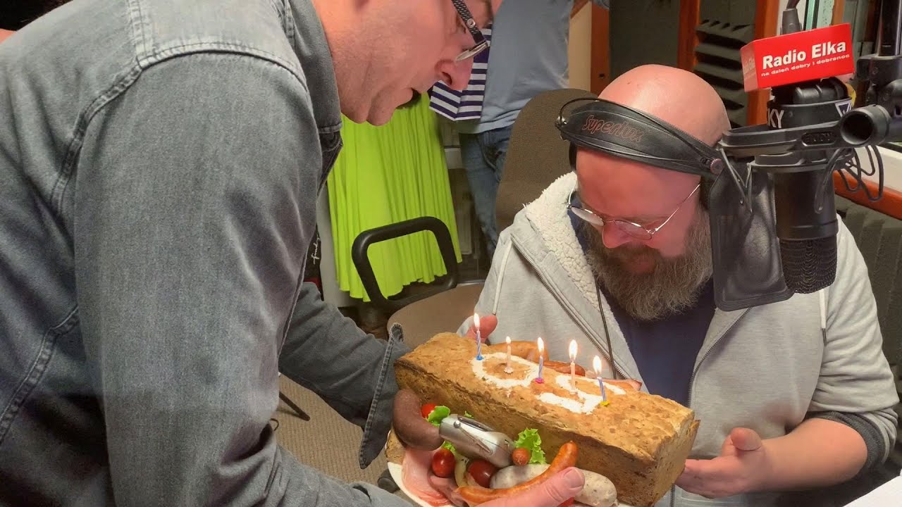 A tu taka niespodzianka - poniedziałek był jednym z najpiękniejszych dni, jakie mi się na tym łez padole przydarzyły. Od rana niespodzianka od Koleżeństwa z firmy. Kto słuchał radia, wie o czym mowa - wjazd w czasie mojej audycji na żywo z pieśnią na ustach i chlebowo-wędliniarskim tortem w dłoniach. Ludzie, moi Szefowie postanowili przerwać audycję, żeby
