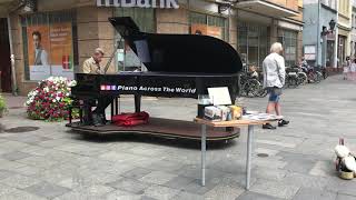 Przechodnie chodzący ul. Słowiańską zapewne przecierają uszy i oczy ze zdumienia, słysząc i widząc na samym środku deptaku koncert fortepianowy. Wykonawcą jest Arne Schmitt – Niemiec podróżujący z fortepianem po całym świecie.