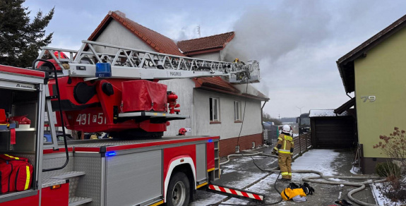 Dziewięć zastępów gasi pożar domu w Gostyniu
