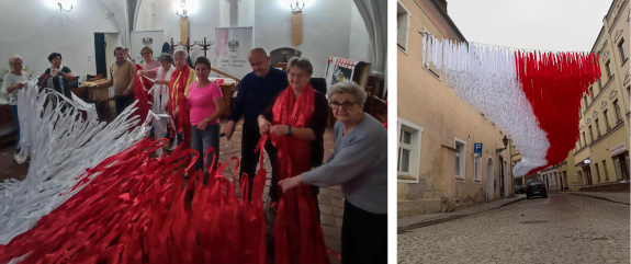 | Wschowa Nad ulicą Kilińskiego we Wschowie zawisła niezwykła, 50-metrowa biało-czerwona flaga. Powstała z około 30 tysięcy wstążek, które przez trzy tygodnie cierpliwie przygotowywali wschowscy seniorzy. Ich dzieło ozdobiło centrum miasta tuż przed obchodami Święta Niepodległości. więcej>> | ||||||||